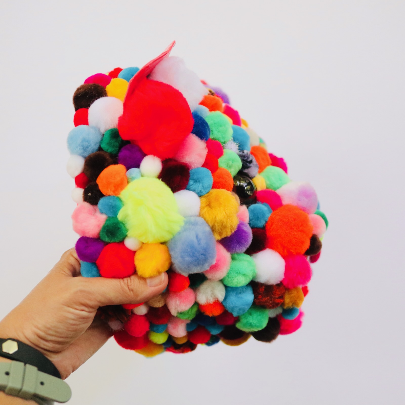 Pom! (The Pom Pom Covered Bear) – Paper Mache Wall Sculpture